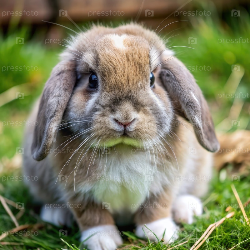Милый мини лоп кролик сидит в саду днем. генеративный ИИ