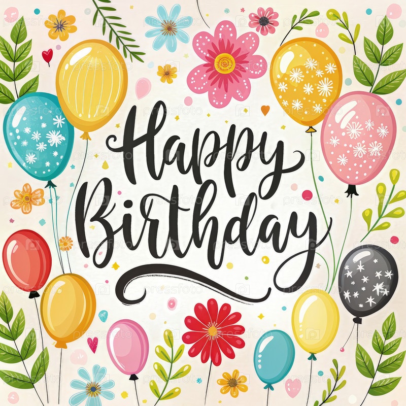 Красочные воздушные шары и цветы Поздравление с днем рождения. генеративная ИИ