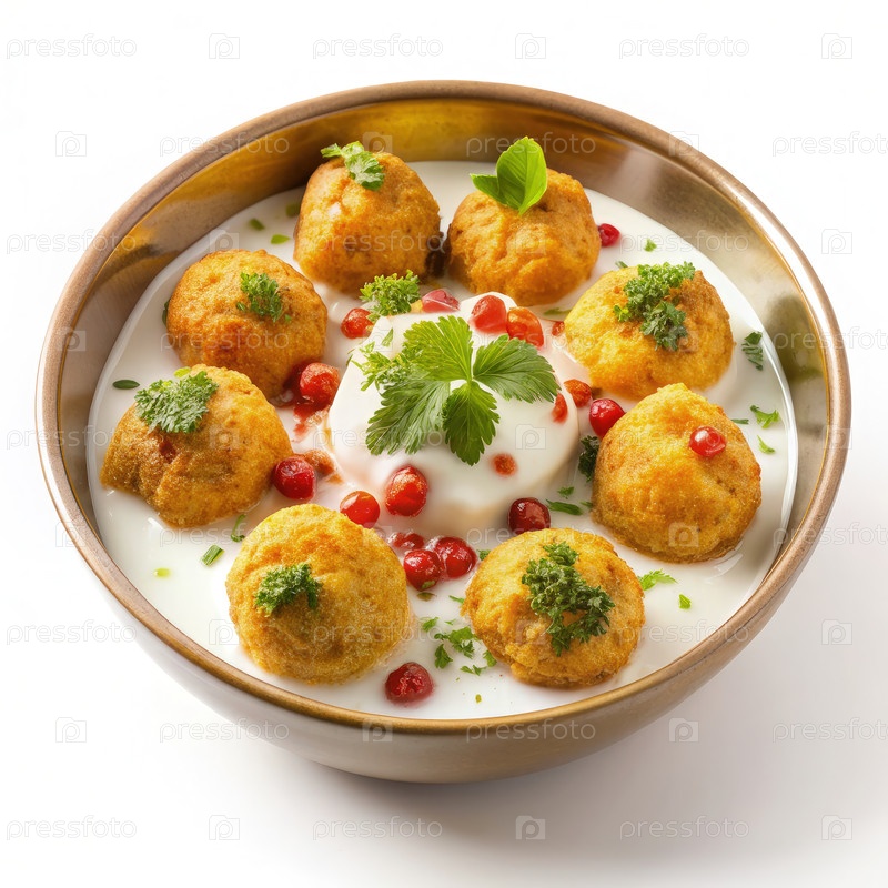 Дахи Вада с йогуртом, клюквами и свежими травами в миске