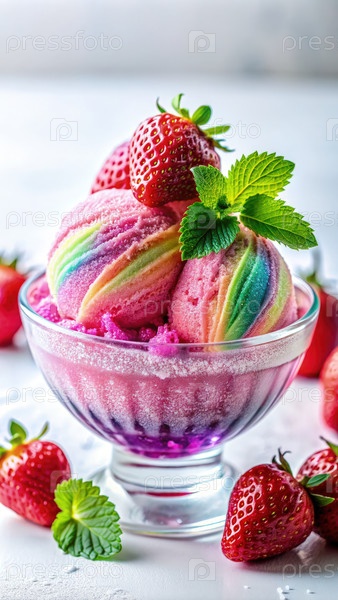 Красочное блестящее мороженое со клубникой и мятой. генеративный AI