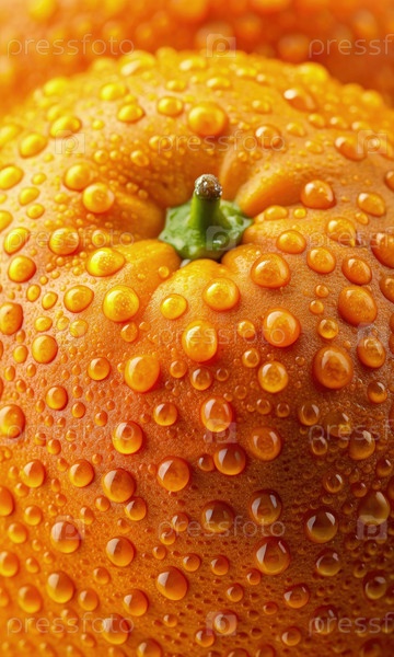 Ближайшее изображение зрелого апельсина, покрытого водяными капельками