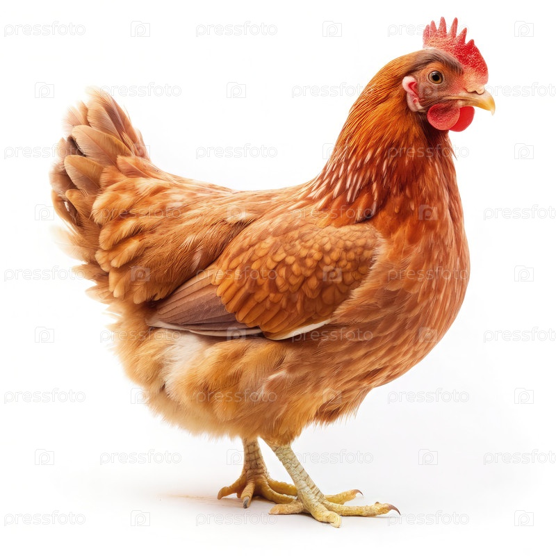 Курица, стоящая на белом фоне