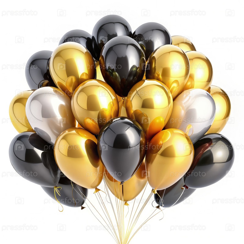Группа золотых, черных и серебряных воздушных шаров. генеративная ИИ