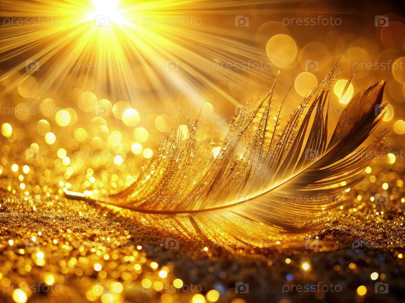 Золотое перо, освещенное солнечным светом. генеративный ИИ