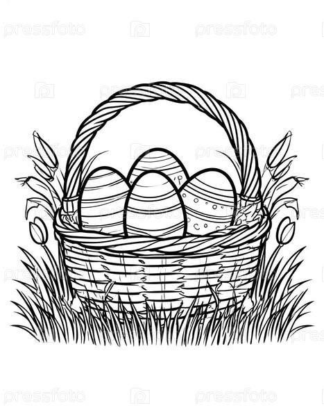 Страница для окраски Пасхи: Корзина с линией яиц Искусство печатные дети
