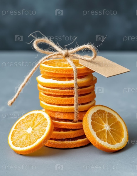 Сушеные нарезы апельсина в кругах, связанных веревкой и тегом