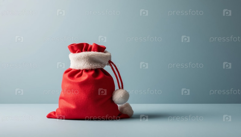 Баннер на Новый год с сумкой Санты Минимализм Синий фон