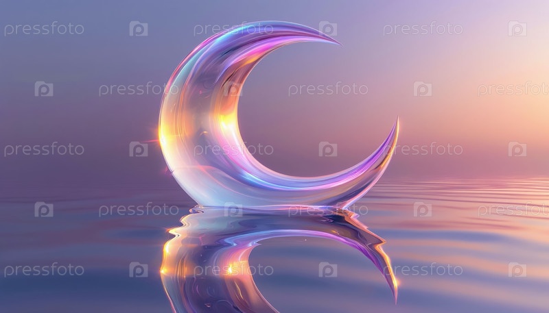 Неонный полумесяц Луны светит отражанием воды