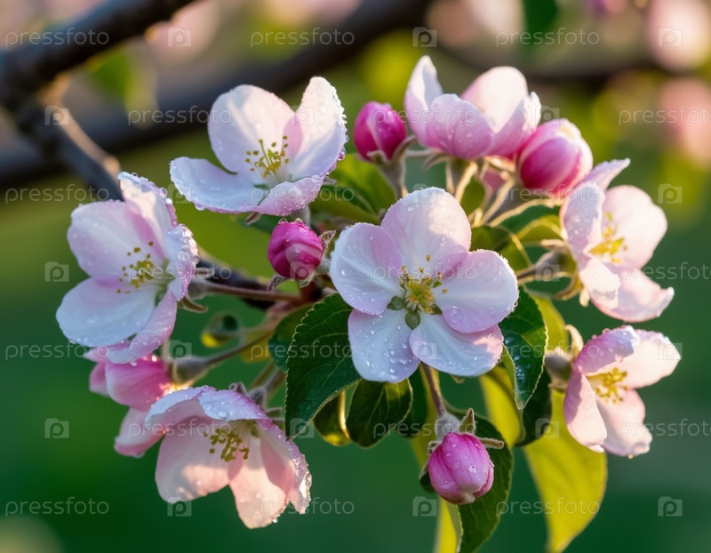 Яблоня в цветении на близком расстоянии.Искусственный интеллект создал