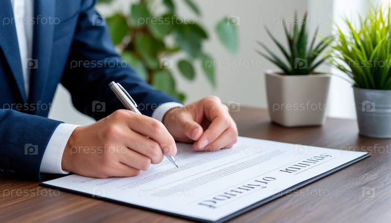 Бизнесмен подписывает документ Руки закрывают профессиональную сцену