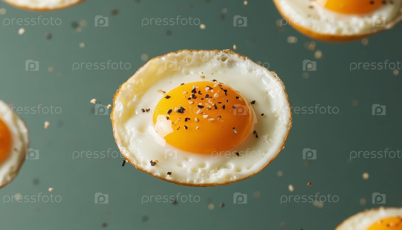 Жареное яйцо плавает в воздухе, левитирует завтрак