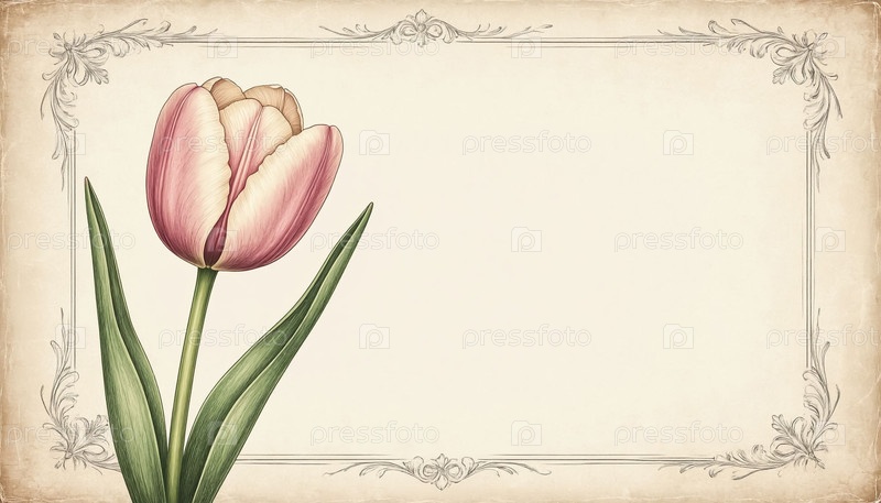 Шаблон карточки или баннера Рамка дудла и тюльпан в мягких тонах Пустой дизайн