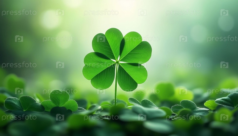 Lucky Four Leaf Clover on Emerald Green Background Ирландский фестиваль празднование