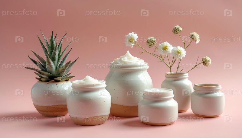 Крем в керамической банке пастельный фон