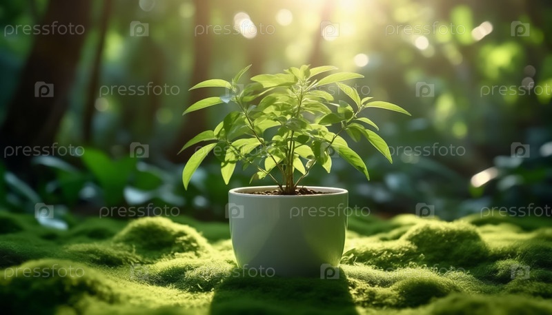 Горшечное растение Летняя природа Зеленый фон Мягкий солнечный свет