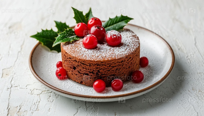 Рождественская выпечка на тарелке на светлом столе, праздничное представление десерта