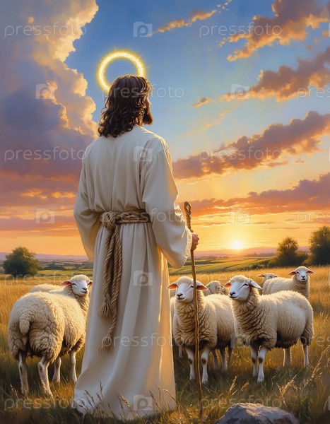 Иисус Христос Добрый Пастырь Цифровая живопись Христианское искусство