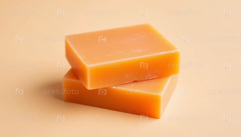Оранжевое ароматное мыло на минимальном бежевом фоне