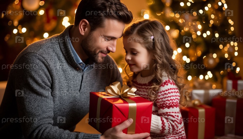 Папа преподносит праздничный подарок маленькой девочке