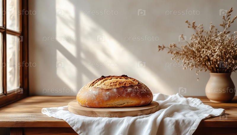 Рустический кухонный фон с хлебом на деревянном баннере