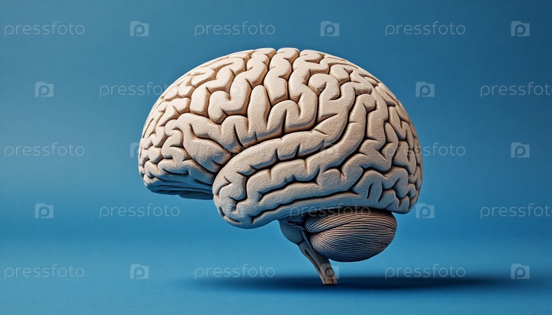 Модель человеческого мозга на синем фоне минимализма