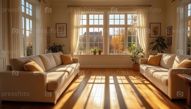 Солнечное освещение Комфортная гостиная Интерьер теплый