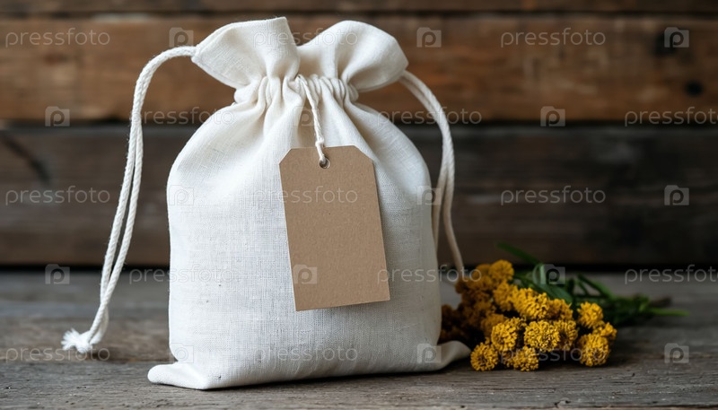 Белый льняной мешок с пустым тегом Изолированный продукт Мокап