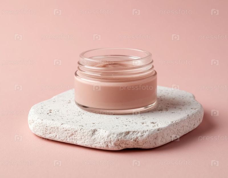 Крем косметическая банка на розовом пастельном фоне, минималистская концепция ухода за телом