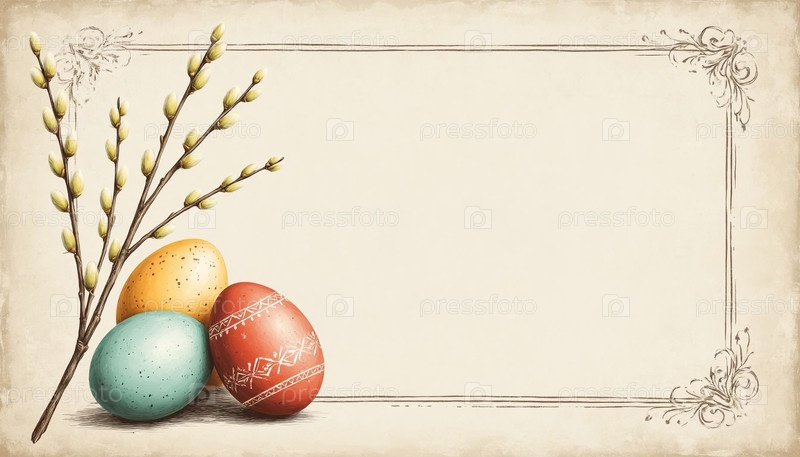 Пасхальный фон с Doodle Eggs и Frame Copy Space для дизайна поздравительных открыток