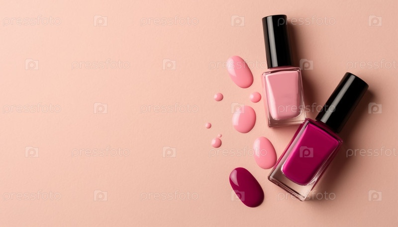 Бутылка лаки для ногтей на розовом фоне Красота Плоская прокладка Косметическая продукция Фотография