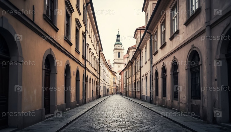 Cobblestone Street со старыми домами в историческом районе Европейского города