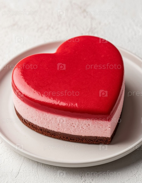 Сердечно-образный торт с глазуркой, романтический кондитерский десерт