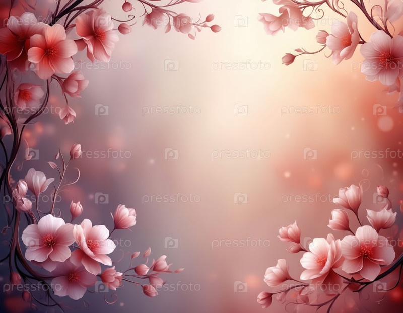 Романтический розово-красный роскошный фон с ботанической границей, готовый к использованию дизайн