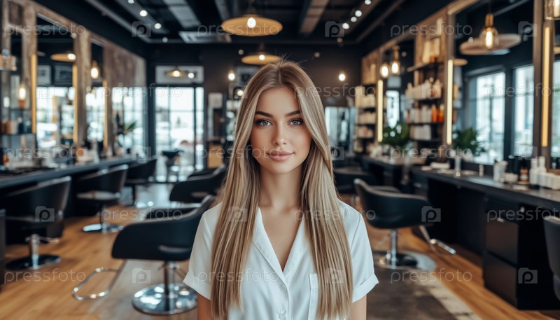 Девушка в салоне красоты парикмахер получает красивые волосы