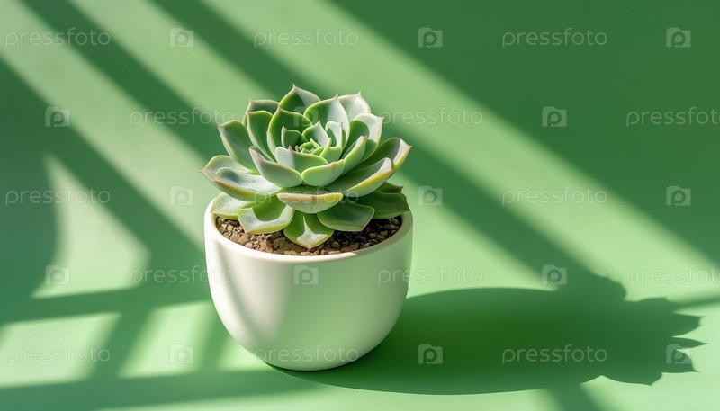 Succulent in Pot на минималистическом зеленом фоне