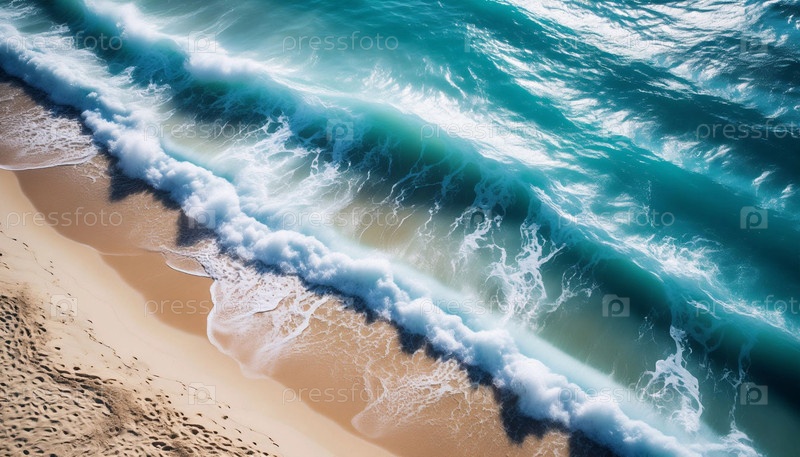 Azure Sea Wave Rolling onto Sandy Beach Aerial Top View (Азурная морская волна, движущаяся на песчаный пляж)