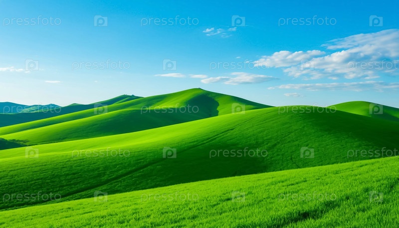 Минималистский пейзаж одного зеленого холма под облачным небом