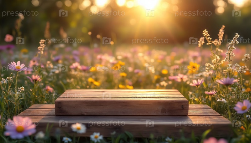 Деревянный подиум на траве, естественная площадка для отображения снаружи