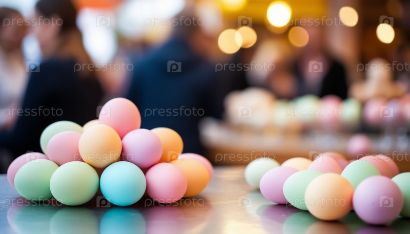 Пасхальная праздничная ярмарка с пастельными радужными яйцами на рынке