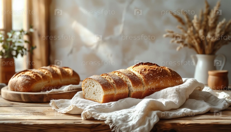 Рустический кухонный фон с хлебом на деревянном баннере