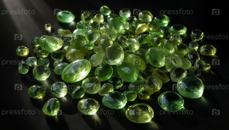 Зеленые изумрудовые драгоценные камни на черном фоне, роскошные ювелирные изделия