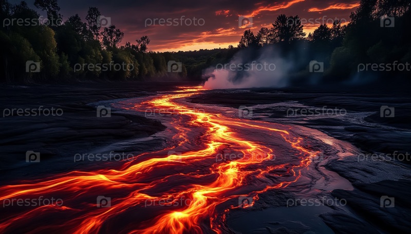 Огненный поток лавы Драматический пейзаж природы