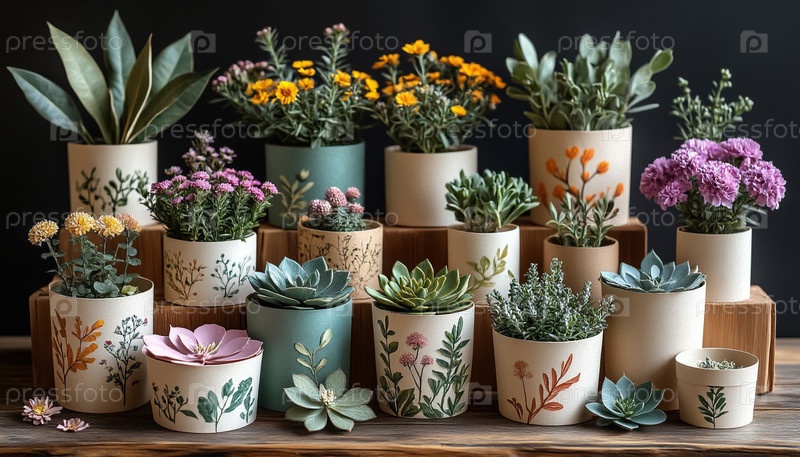 Эко растительные горшки с цветами ботанический дизайн бумаги