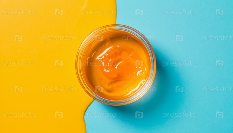 Желтая кремовая текстура в стеклянной банке на синем фоне Top View AI Coloring Page
