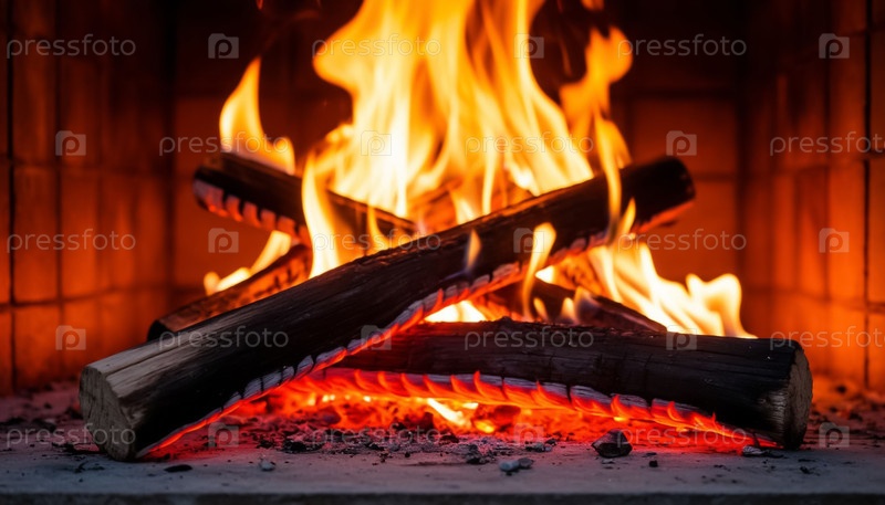 Вид трескающегося огня в огне создающий теплую атмосферу