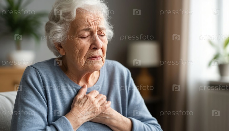 Зрелая женщина держит левую сторону грудной клетки от боли в ближайшем плане