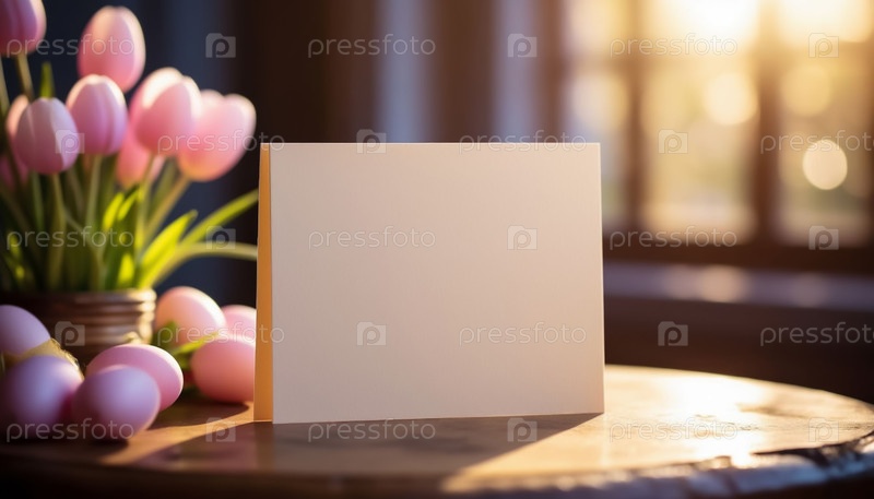 Белая пустая открытка с пасхальной темой на столе