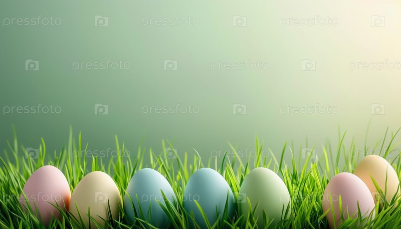 Окрашенные пастельные пасхальные яйца на мягком зеленом фоне внизу макета пасхального баннера