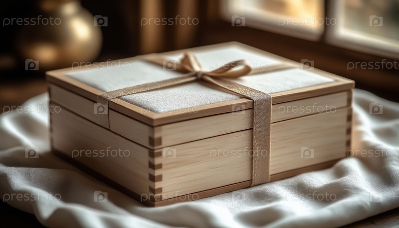Деревянный подарочный ящик с текстильным льнами Пастельная облицовка интерьера