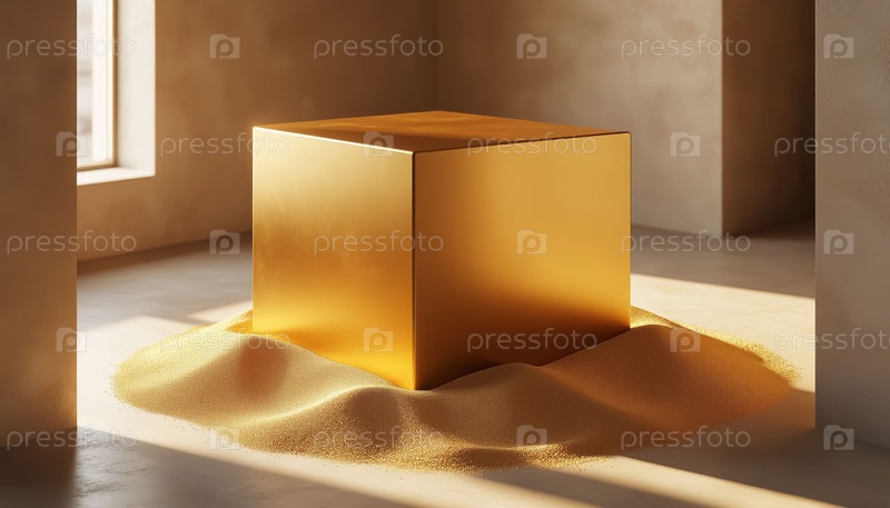 Большая золотая коробка посередине комнаты